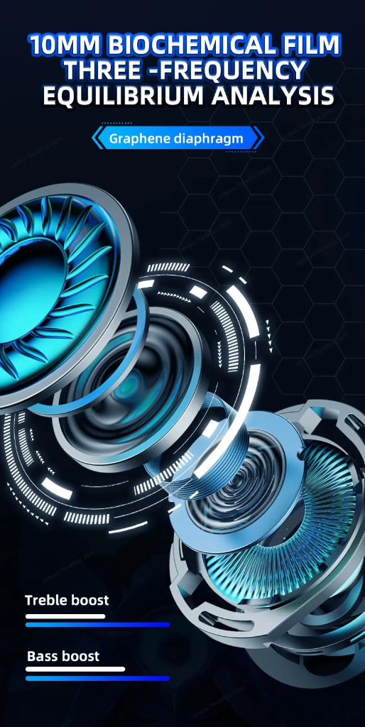 Fones de ouvido de jogos de design mais recentes da Lenovo em 2023. modo duplo para música/jogo, chip de jogo personalizado, baixa latência para jogos, confortável de usar, decodificação de áudio AAC HD